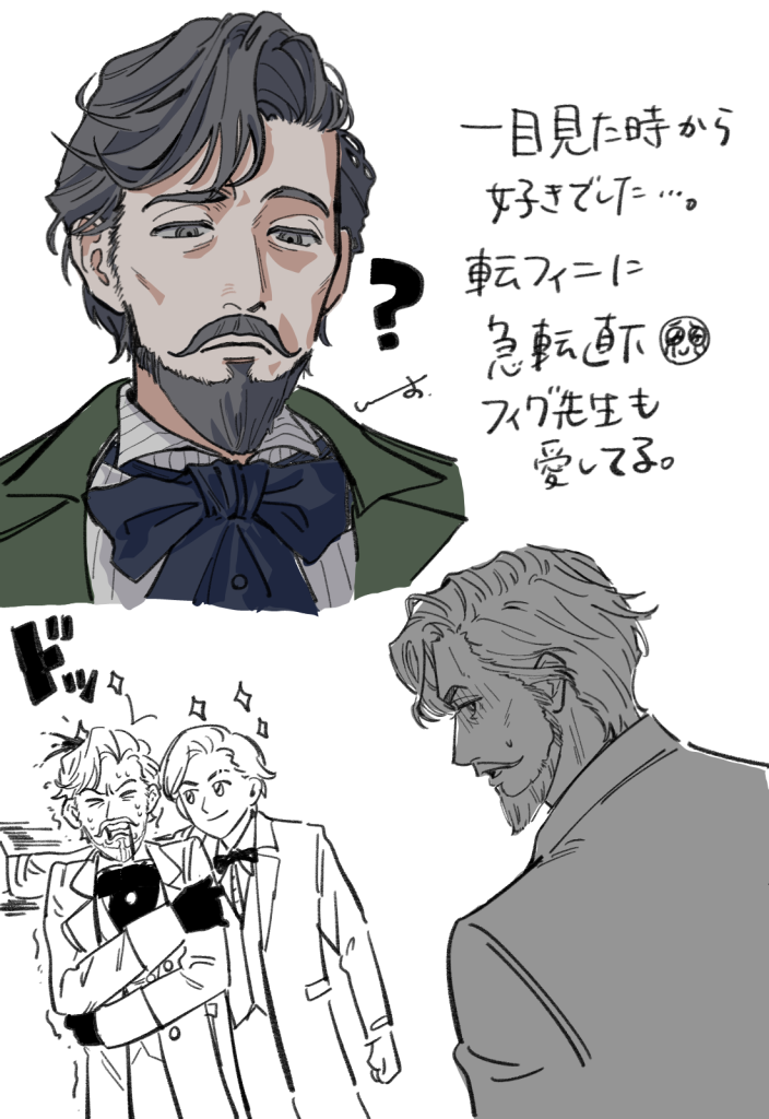 色気のあるスネイプ先生はスリザリンの女生徒から憧憬に近い好意を持たれる事がある、というようなエピソードをお見かけすることがあるので(その事実を知って嫉妬に身を燃やすハリーの姿はご褒美です)そうでない場合のスネイプ先生とは、を思いながら描いていたのが1、2枚目の絵でした。